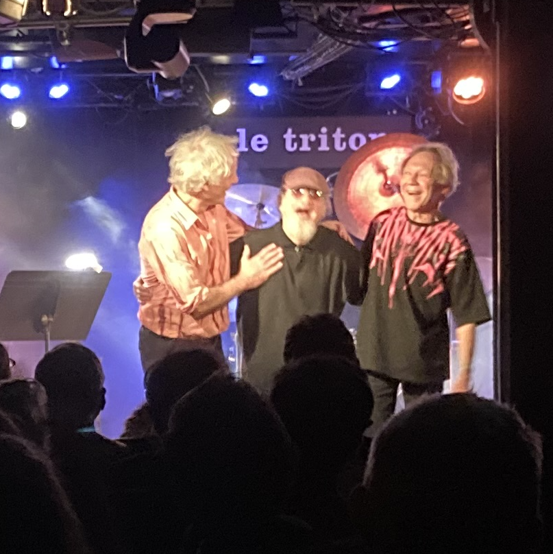 Après le concert, le bar du Triton, semble plus réduit qu’il ne l’est réellement, plein comme un œuf, d’histoires, d’amitiés, d’humanité, de rêves et de ces utopies dont le présent nous prive tant. Parmi les trainards, Jean-Philippe Viret dont le trio (Édouard Ferlet et Fabrice Moreau) recevra Nancy Huston pour leur programme “Le Mâle entendu” où l’écrivaine a tissé leurs expériences et leurs voix d’hommes aux siennes (au Triton le 6 novembre); Christophe Marguet qui dévoilera le répertoire “Island” de son quartette (Régis Huby, Manu Codjia, Hélène Labarrière (au Triton le 7 novembre). Franck Bergerot