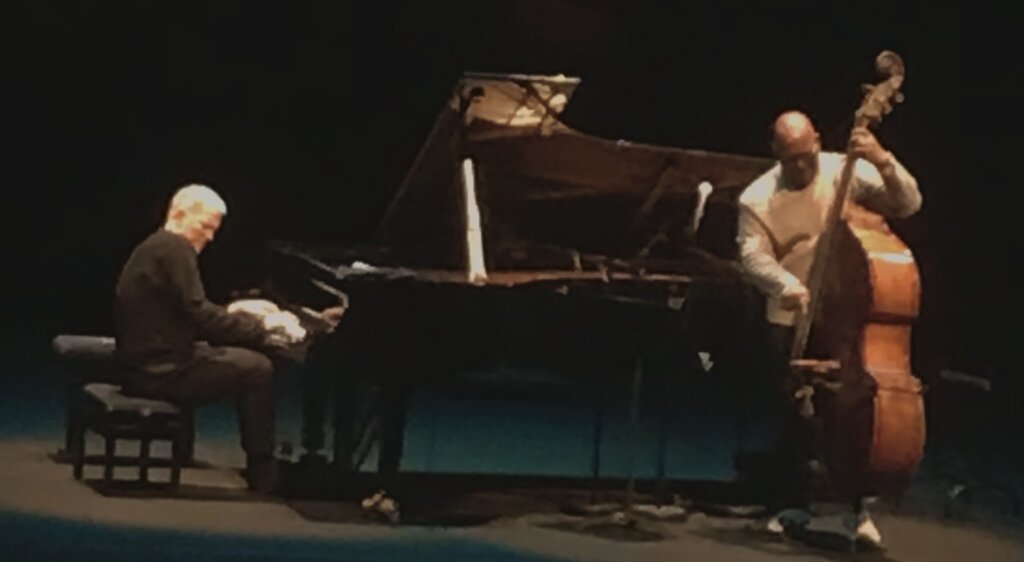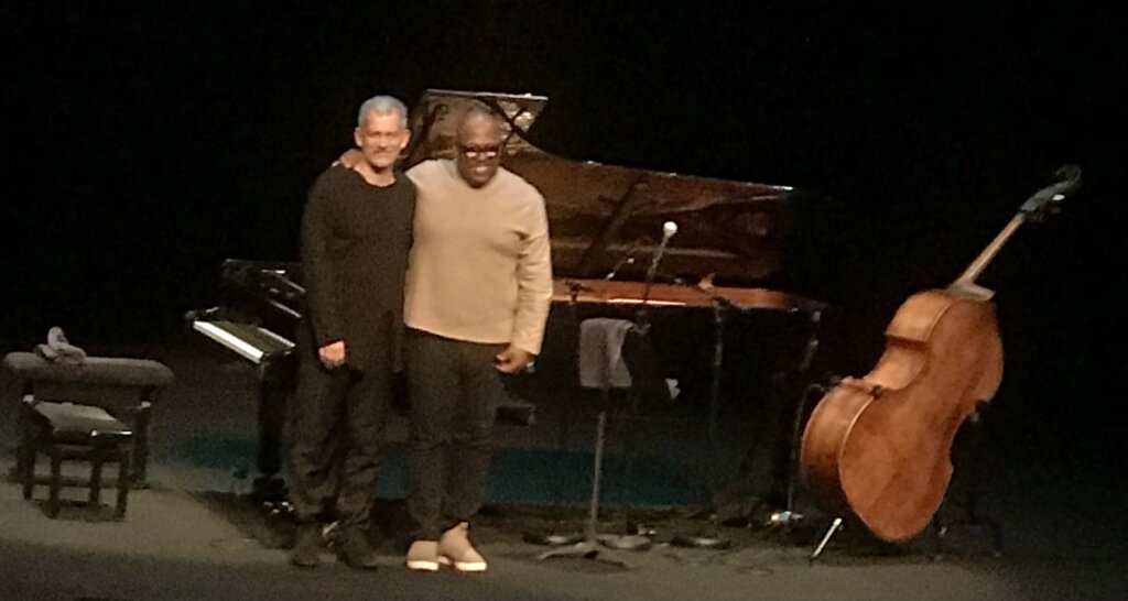 Concernant le concert du mercredi 18 mars, le duo a démarré par un standard que Brad Mehldau affectionne particulièrement : Nobody Else But Me, puis un hommage a été rendu aux compositions de Wayne Shorter avec de passionnantes relectures d’Angola et de Mahjong. Monk aussi était à l’honneur avec Skippy et Burt Bacharach avec Wives and Lovers. Brad Mehldau affectionne les belles mélodies indémodables et avec son camarade de jeu, ils nous ont enthousiasmés avec leurs versions de Calling You (extrait de la B.O de « Bagdad Café ») et de Killing Me Softly de Roberta Flack. Ils ont aussi proposé chacun leur tour des morceaux en solo : Isn’t This a Lovely Day ? pour Brad Mehldau et un Fly Me To The Moon d’anthologie en contrebasse solo pour Christian McBride !