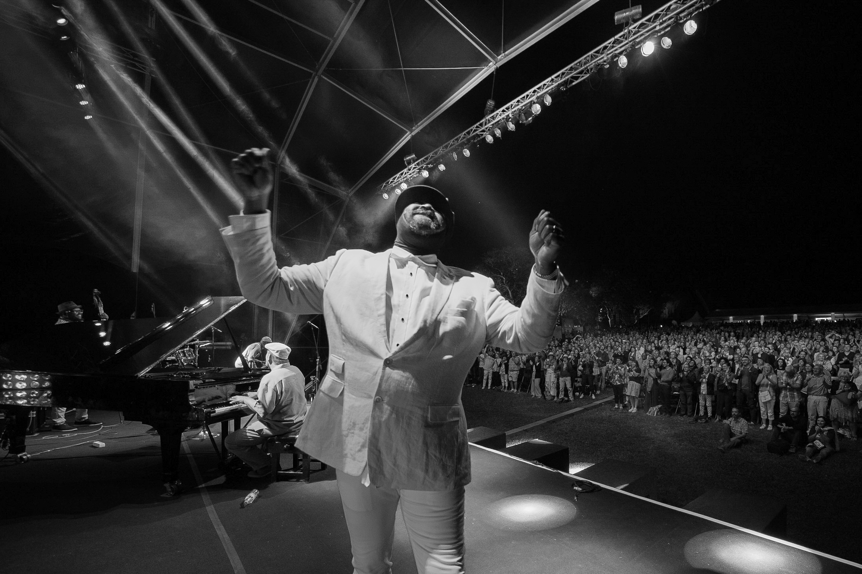 Derrière le savoir-faire, les compositions ne sont pas toutes d’un intérêt flagrant. October, écrit pour Gilad Hekselman (lequel s’exprime avec une grande fluidité), est l’occasion d’étirements sans enjeux. Les pièces se signalent par un côté circulaire, obsessionnel, comme enroulées sur elles-mêmes. C’est techniquement très au point, mais une fois lancés, rien ne vient déstabiliser le déroulement des morceaux ou apporter des variations de couleurs, malgré la thématique saisonnière. On n’en admire pas moins la cohésion et le souffle épique du groupe, l’expertise de chaque musicien et leurs interactions, la sonorisation aux petits oignons. Le groupe demeure suffisamment accessible pour captiver un large public et assez riche en événements pour donner du grain à moudre aux jazzfans. Cette première soirée permet à un public venu en nombre retrouver Gregory Porter, deux ans après une prestation plébiscitée sur l’île, de découvrir le saxophoniste de Vancouver. Dans d’autres acceptions, le terme anglais « season » renvoie aussi à « assaisonnement » et « mûrissement ». La musique de Wendel, qui a rejeté toute trace de blues ou autres caractéristiques du jazz tel que défini par ses origines afro-américaines, au profit de références à la culture classique européenne, pourrait recourir à davantage d’épices sans que l’on vienne s’en plaindre.
