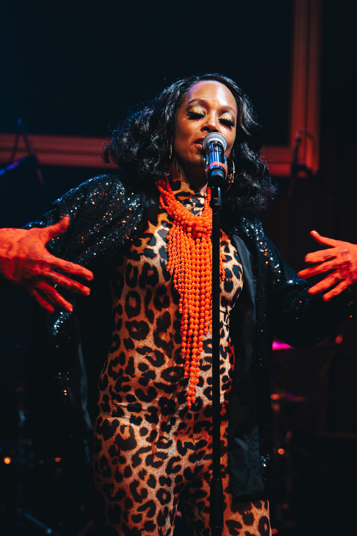 Pour l’occasion, elle est accompagnée par son batteur régulier, Pat Williams, un musicien de Houston qui a travaillé notamment avec Bob James, Joe Sample et Lalah Hathaway, et par un trio de musiciens français qui étaient déjà de la partie lors de sa visite précédente, Thomas Jean-Alphonse à la basse, Mathias DiGiusto à la guitare et Adrien Fromager aux claviers, tout à fait à la hauteur des enjeux. Comme elle l’annonce dès le début du show, c’est le répertoire de son dernier album, ”Until We Meet Again ”, qui est au programme avec des titres comme Flowers, Photograph et All The Ways dont le public est visiblement familier. Vocalement, bien qu’elle se présente comme une « fausse soprano », elle évoque avec ses aigus aériens et une certaine touche sucrée, un mélange réussi entre Minnie Ripperton et Diana Ross, et son impressionnante aisance vocale lui permet de glisser naturellement dans ses propres titres des emprunts aux Stones (Miss You) ou à Prince (Kiss). Elle s’éloigne de ses productions récentes pour glisser quelques titres plus anciens comme Bad On You, sur lequel Pat Williams remplace Anthony Hamilton, et quelques reprises, dont un excellent I Want You For Myself, emprunté à George Duke.
